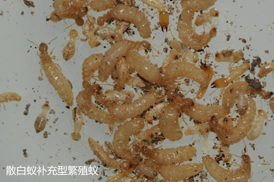 稱為補充繁殖型。白蟻群體久居住在一個地方,常造成食料不足,迫使部分工蟻和少量兵蟻離開主群體遠去尋食找水。隨著時間推移和距離的遠離,再加上其它外界因素的影響,結果使它們與主群體完全失去聯(lián)系。這時它們即組成小群體,然后群體內部就能產(chǎn)生補充型蟻王和蟻后,而成為獨立群體。另外,當原始蟻王、蟻后死亡后,短翅型蟻王、蟻后作為補充出現(xiàn),延續(xù)整個白蟻群體的繁衍。