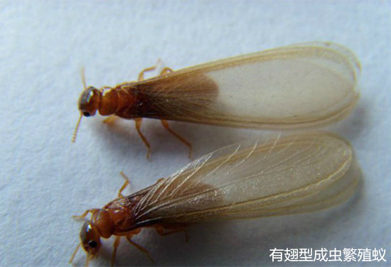 或有翅型:體軀骨化,黃、褐或黑色,有兩對發(fā)達的翅。每年4-6月是其分飛高峰期,特別是在春夏雨后悶熱時,大量長翅繁殖蟻從蟻巢中飛出,在離巢不遠處的建筑物附近低飛,飛行時間很短,這種現(xiàn)象稱為婚飛或群飛(分群)。群蟻在低空飛舞,好像在開舞會,各自毫無拘束地自由選擇對象。"情投意合者"飛落地面,各自脫掉翅膀,雌雄成雙追逐,通常為雌前雄后,完成"婚配"大事。配對后的雌雄成蟲經(jīng)一段時間后,便開始尋找合適場所,建筑新巢"定居"。入穴后,雄蟲常用口器舔舐雌蟲的腹部,有時雌雄蟲彼此舔舐,然后產(chǎn)卵,繁殖后代,另立新的群體。這對"新婚"的雌雄蟻,就是未來新群體的母蟻和父蟻,也就是新群體中的蟻后和蟻王。大多情況下,這對伴侶終身過著"一夫一妻制"的文明社會生活。但不是婚飛中的所有個體都能成雙建立新群,當它們大量飛出時,常被各種鳥類、捕食性昆蟲或其他動物吃掉,往往只有其中的少數(shù)能夠幸存下來,但盡管是少數(shù),也足以維持其種族繁衍,并造成對木質建筑物的危害的了,王后躺在王室中可是專門"生育"的,到一定時期又有成蟲出飛建立新的群體。